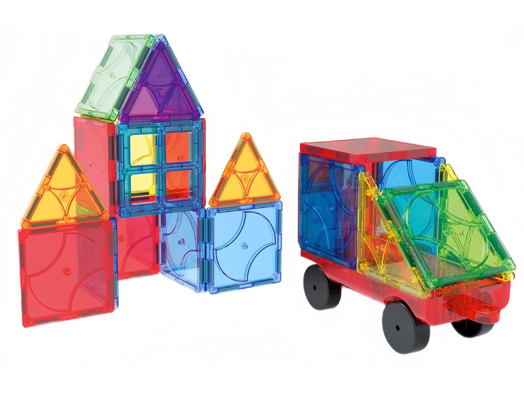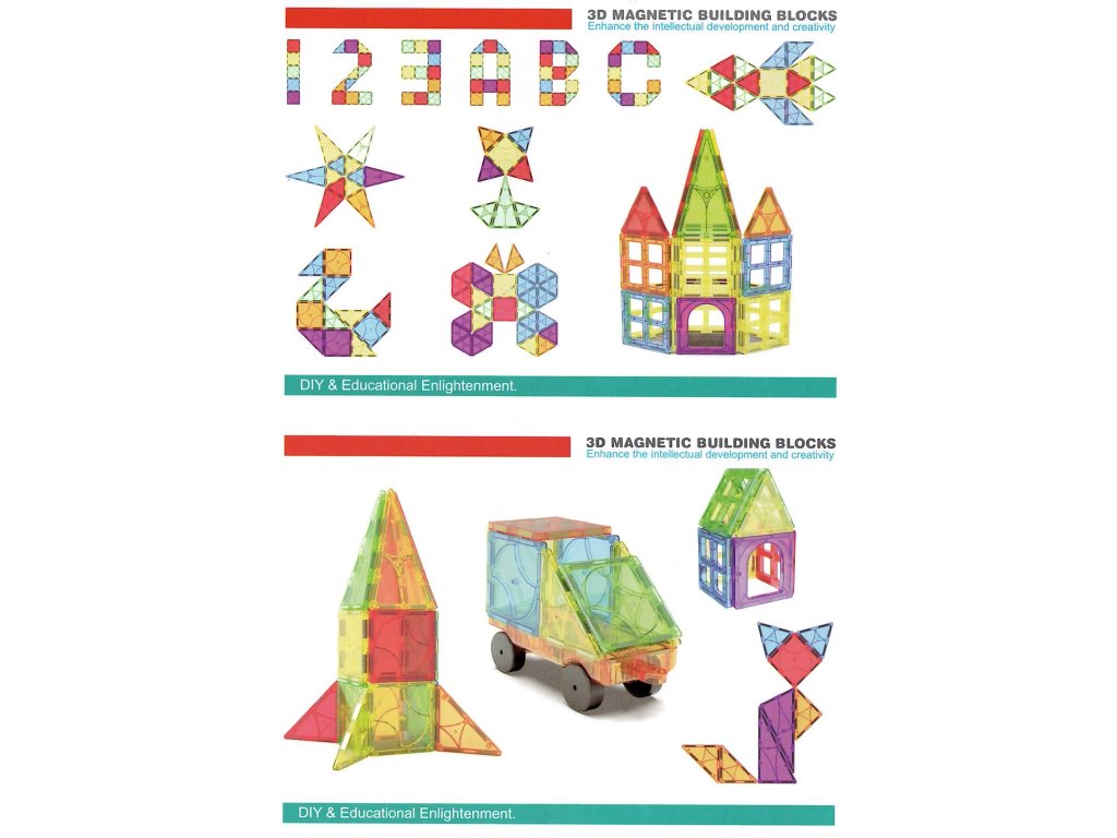 Magnetická 3D stavebnice obsahuje různé geometrické tvary, které k sobě přilnou. Děti se zde učí skládat nejrůznější tvary, svá první tělesa a prostorové objekty. Stavebnice obsahuje 30 dílků o velikosti cca 6 - 13 cm a jeden podvozek pro auto (cca 17 cm).
