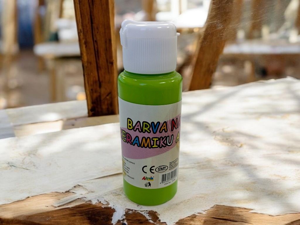 Barva na keramiku a sklo Tyrkysově zelená (Turquoise green) v balení 60 ml, akrylová, voděodolná po zaschnutí nevyžaduje zapékání v troubě, pro delší životnost se doporučuje ruční mytí.