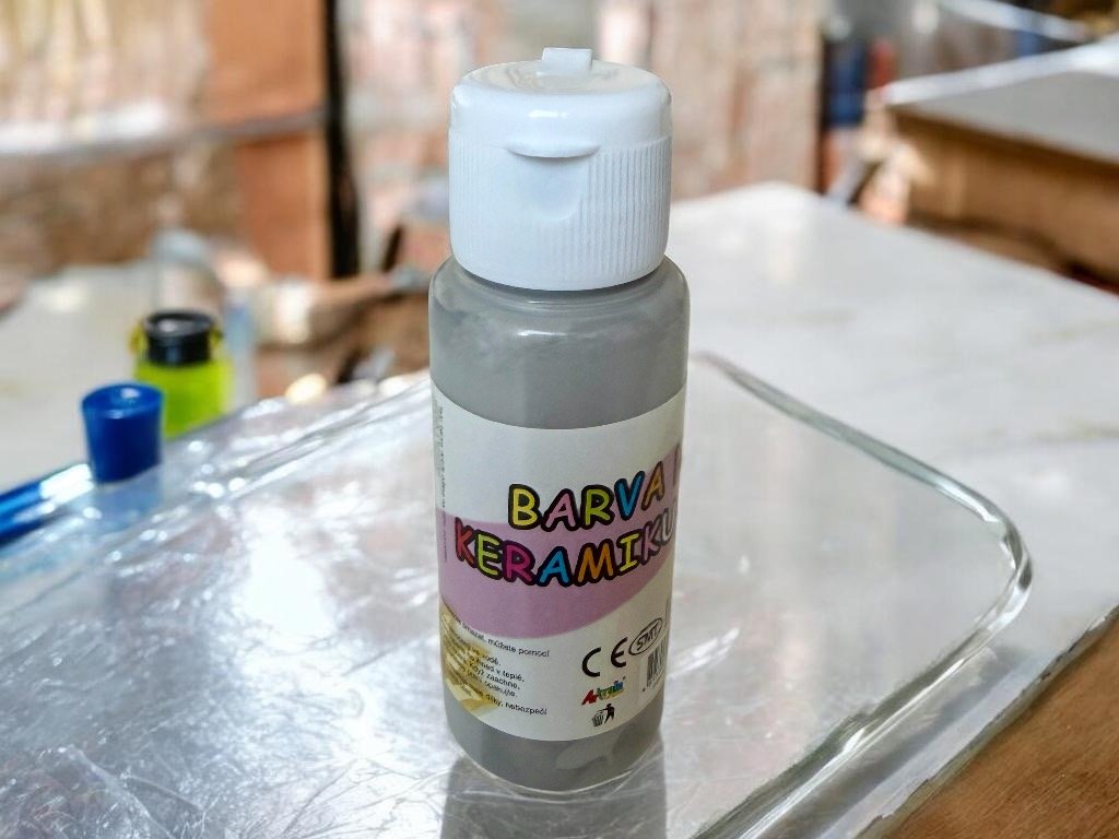 Akrylová barva na sklo a keramiku stříbrná 60 ml – Voděodolná bez zapékání