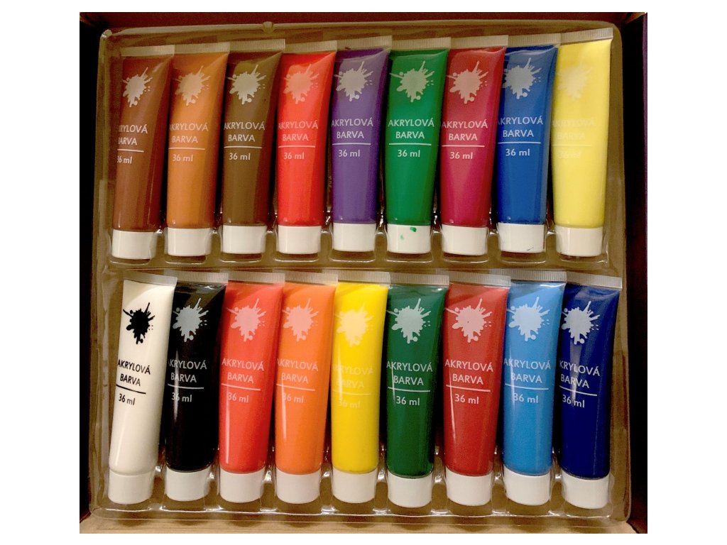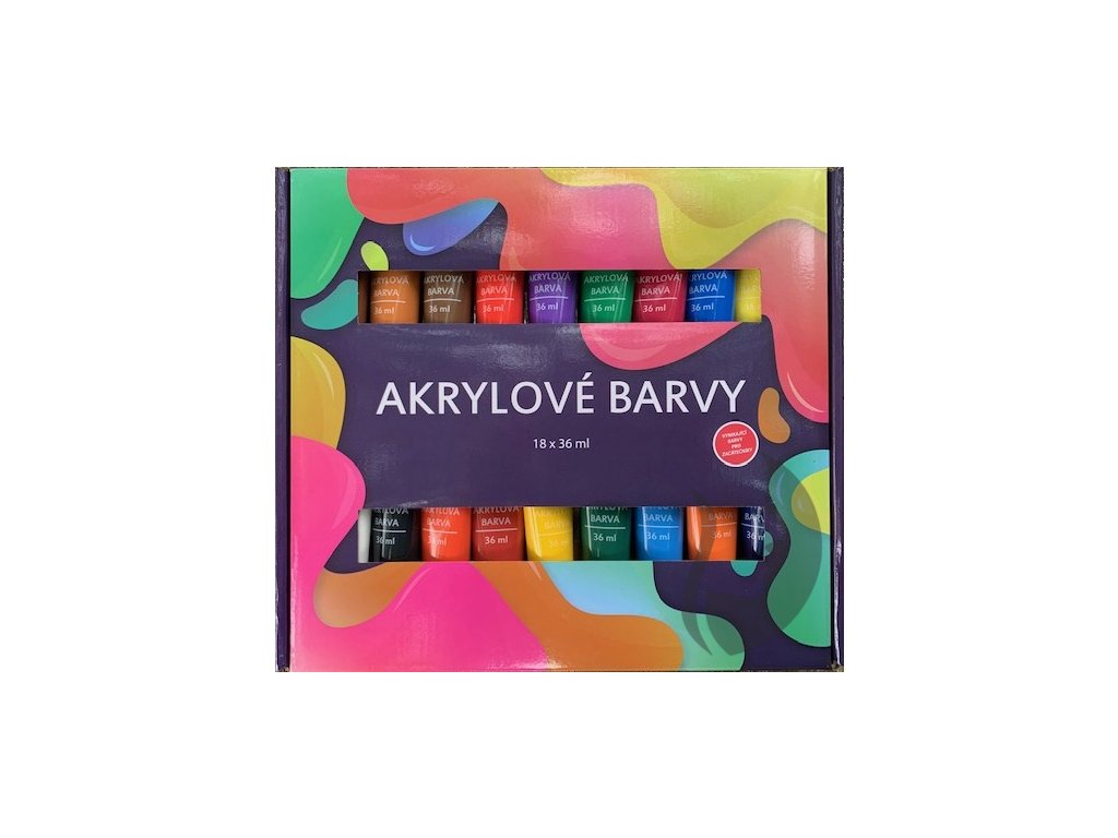 Obsah balení: 18 akrylových barev v tubách po 36 ml.