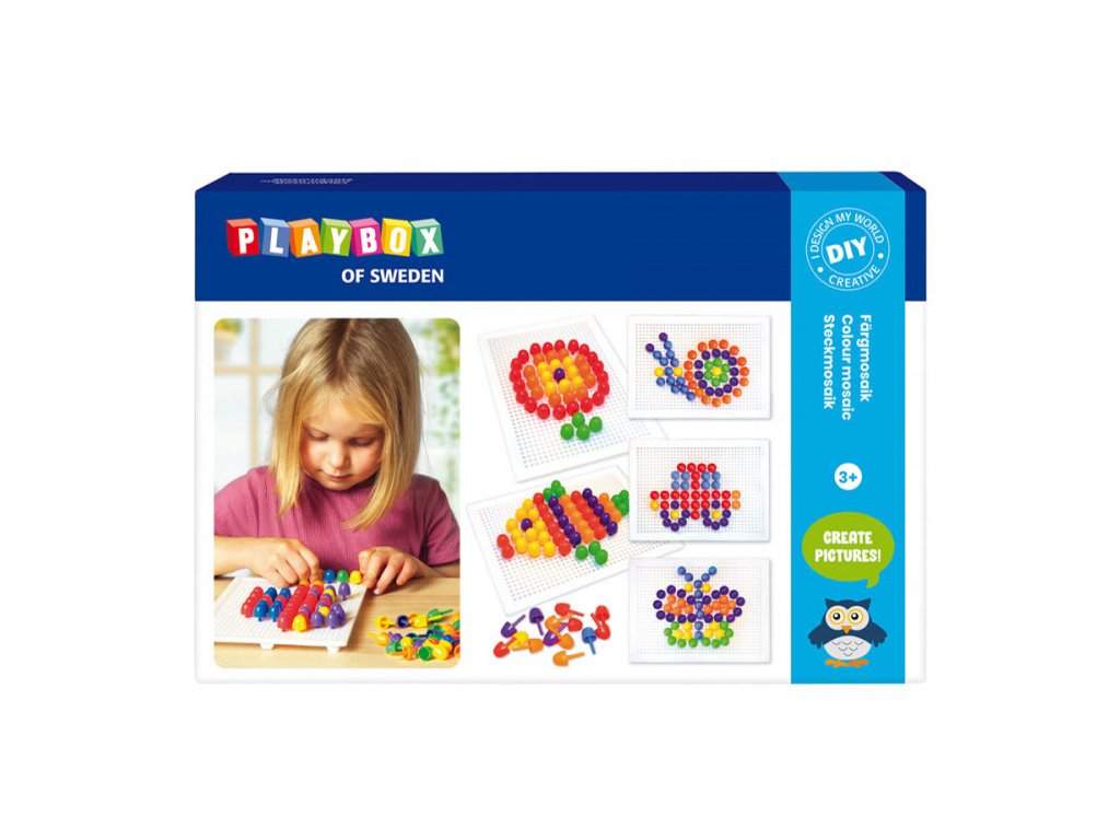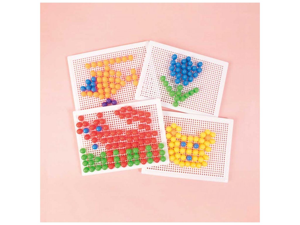 Kompletní sada barevných mozaikových dílků a destička, na kterou umísťujete mozaiku.