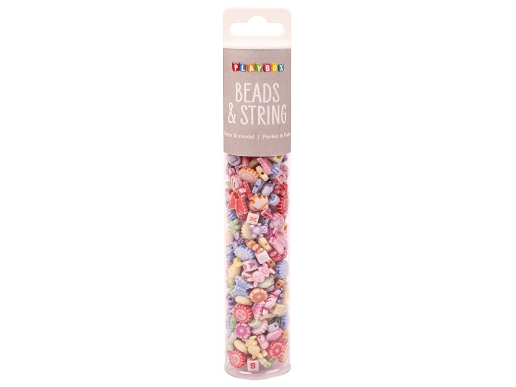 Barevné plastové korálky v tubě + šňůrka, 350 ks, pastelové