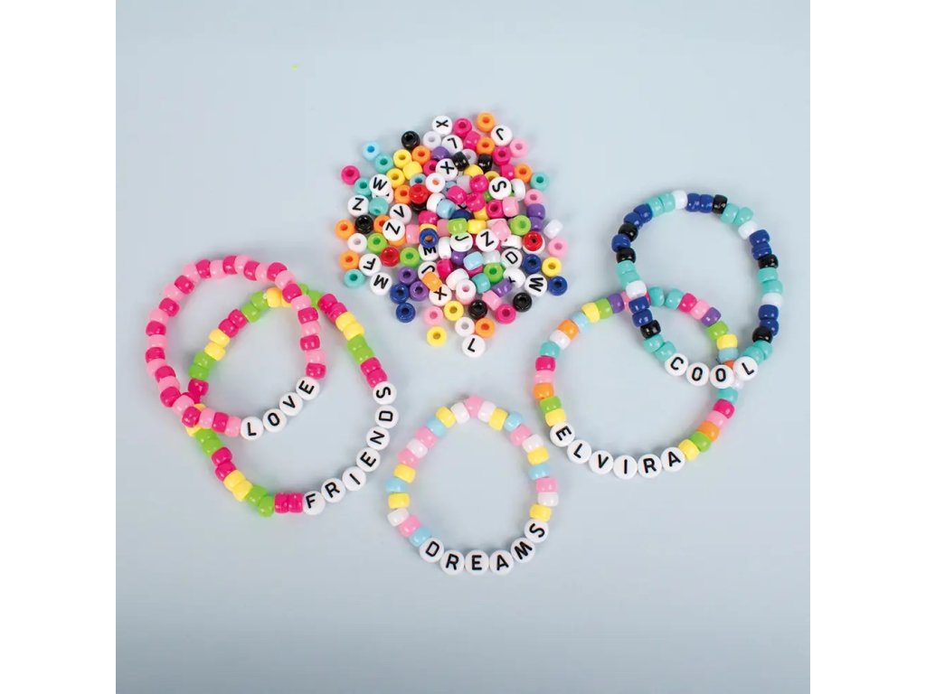 Kreativní korálková směs s 650 mini korálky Pony a korálky s písmeny v různých barvách. Ideální pro vytváření personalizovaných šperků, náramků se jmény nebo barevných dekorací. Malé korálky se snadno navlékají a jsou ideální pro procvičování jemné motoriky, rozpoznávání písmen a pravopisu hravou formou. Inspirativní aktivita, která spojuje radost z tvoření s učením, a to jak doma, tak ve vzdělávacím prostředí.