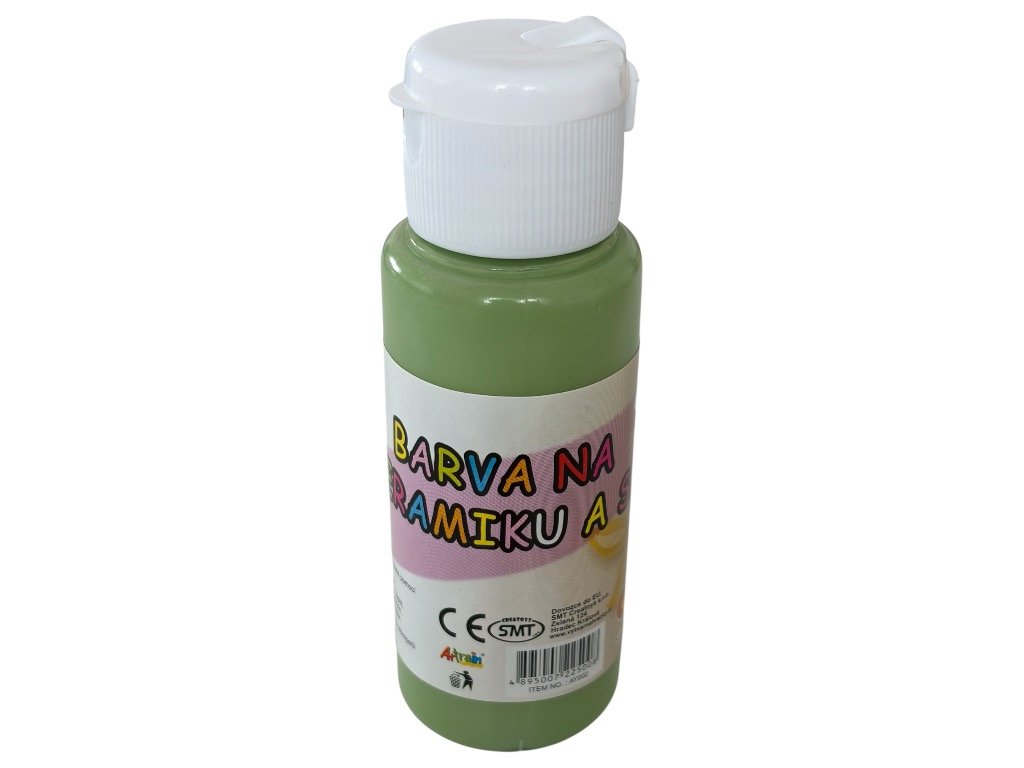 Akrylová barva na keramiku a sklo zelená 60 ml. Voděodolná po zaschnutí, bez nutnosti zapékání. Ideální pro dekorování keramiky, skla i kamínků.