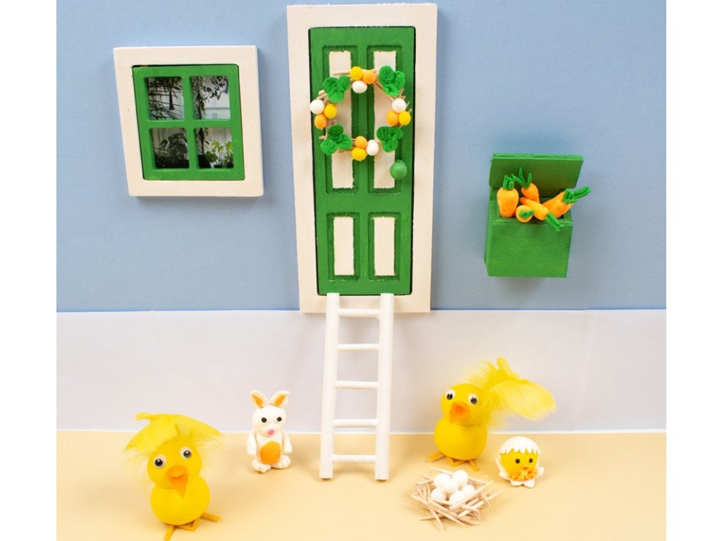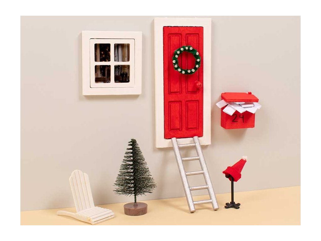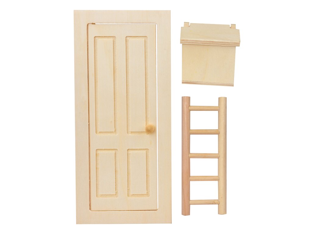 Kouzelná dřevěná dekorace v podobě malých dveří, okna, žebříku a schránky, která oživí interiér i zahradu. Ideální pro tematické tvoření, sváteční výzdobu jako vánoce či velikoce a kreativní DIY projekty pro děti i dospělé.