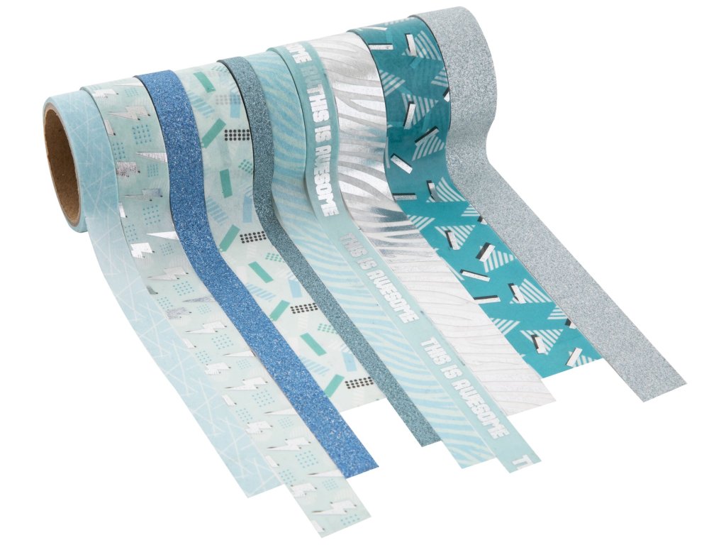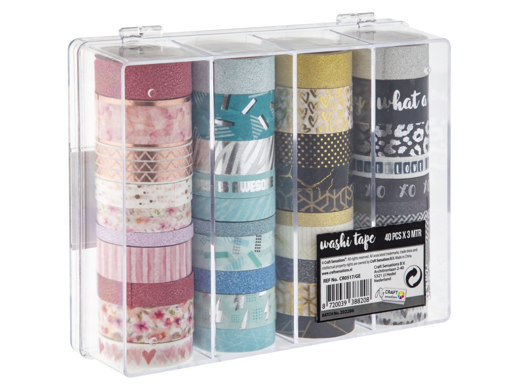 Dekorační lepicí páska - Washi pásky 3m, 40ks v boxu - třpytivé
