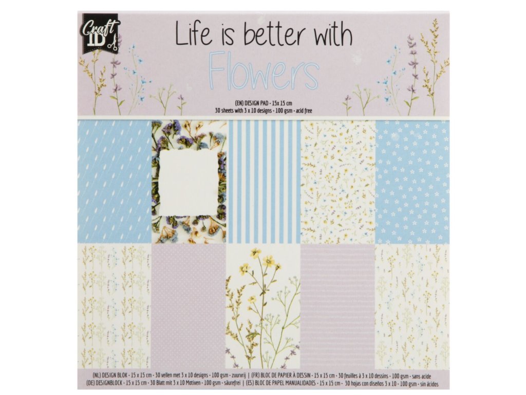 Designový papír, 15x15 cm, 20 listů, 100 gms - Flowers