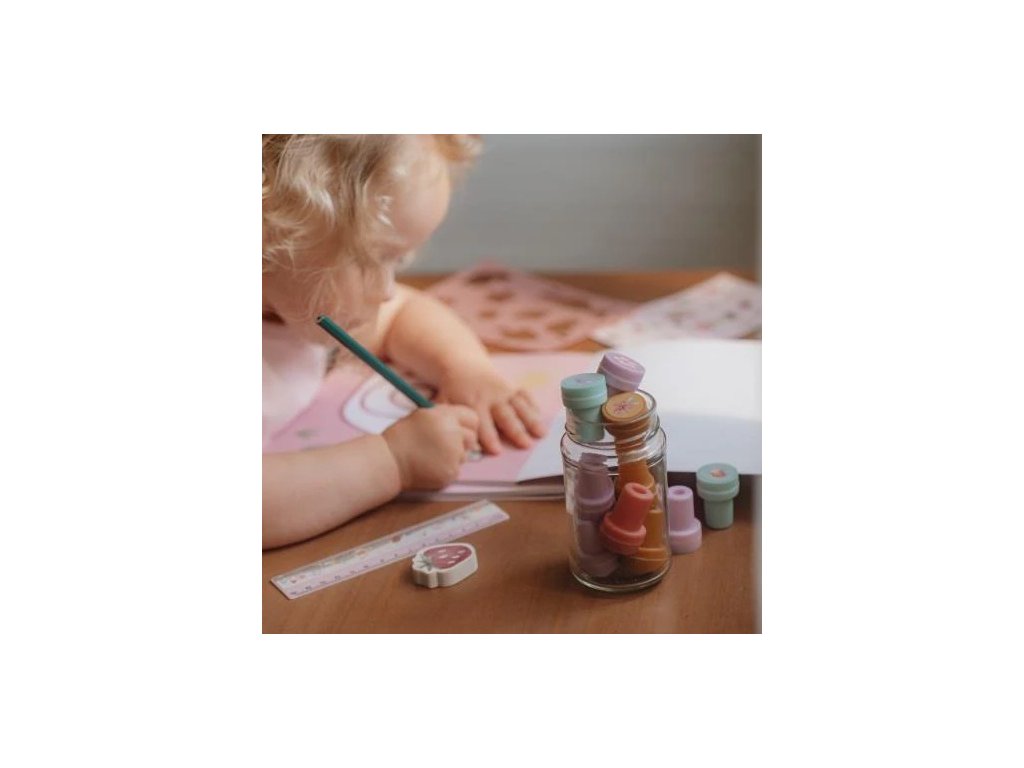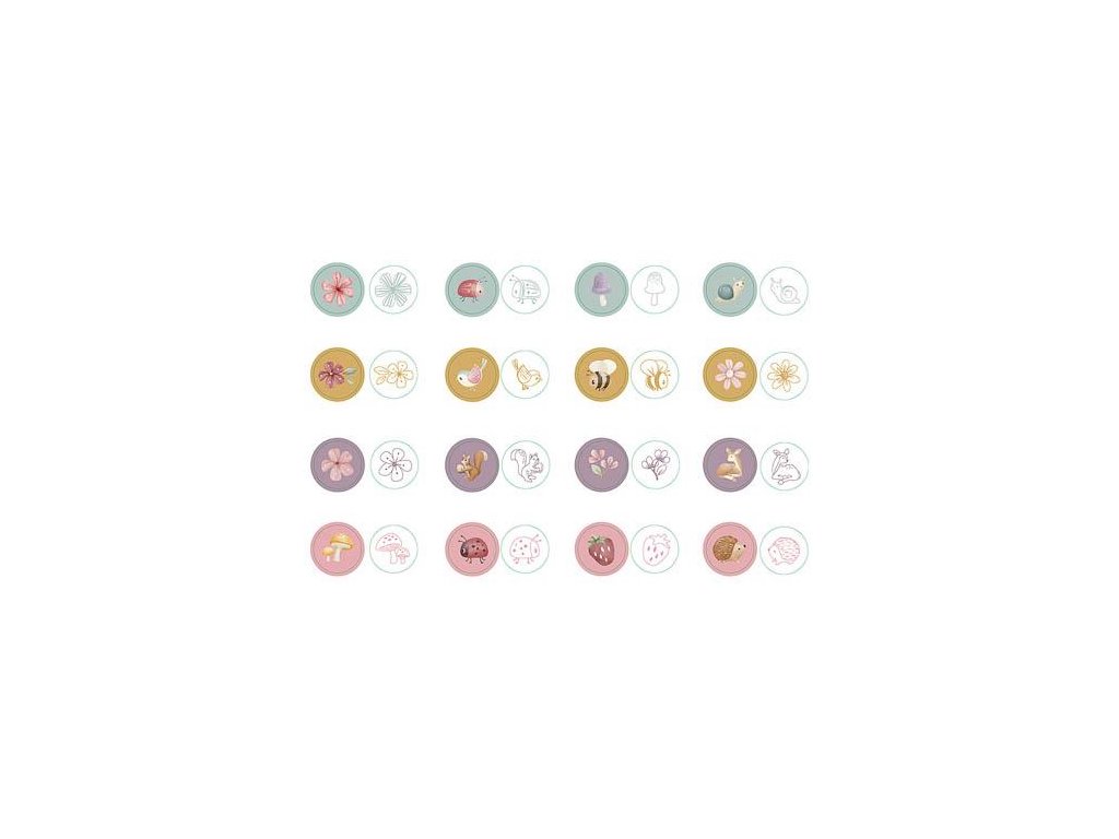 Tato sada obsahuje 16 různých motivů, která mají vlastní barevný inkoust – není potřeba žádná poduška. Razítka jsou navržená tak, aby je děti snadno uchopily a mohly pohodlně tisknout vlastní vzory.
