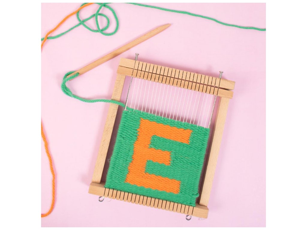 Tkalcovský stav22x19 cm pro děti obsahuje vše potřebné k prvnímu tkaní. Součástí balení je dřevěný rám, pletací jehlice a barevná příze. Ideální pro tvoření podložek, malých koberečků nebo dekorací.