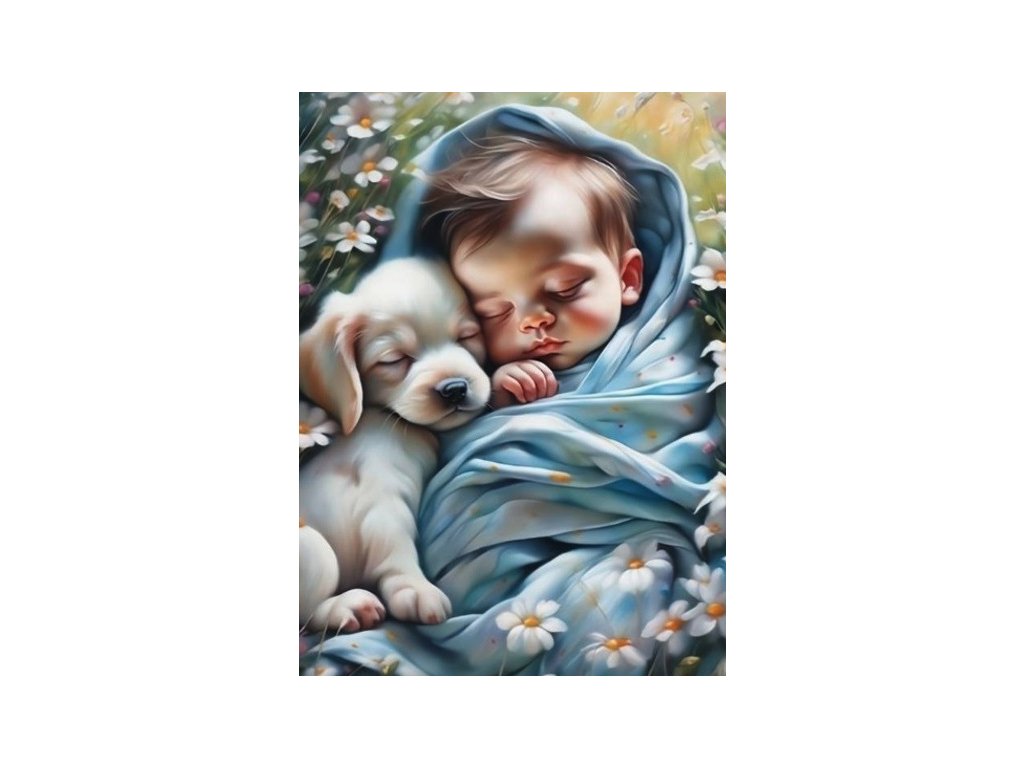 Diamantové malování Dítě a štěňátko 30 x 40 cm