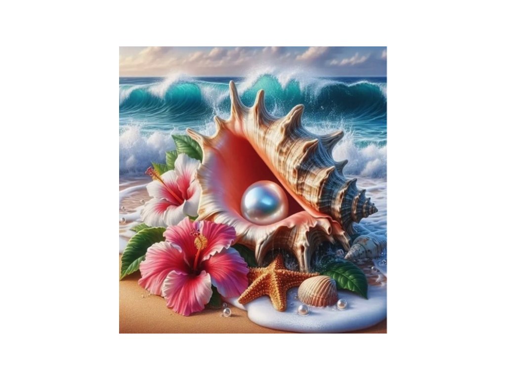 Diamantové malování - Mušle s perlou 30 x 40 cm