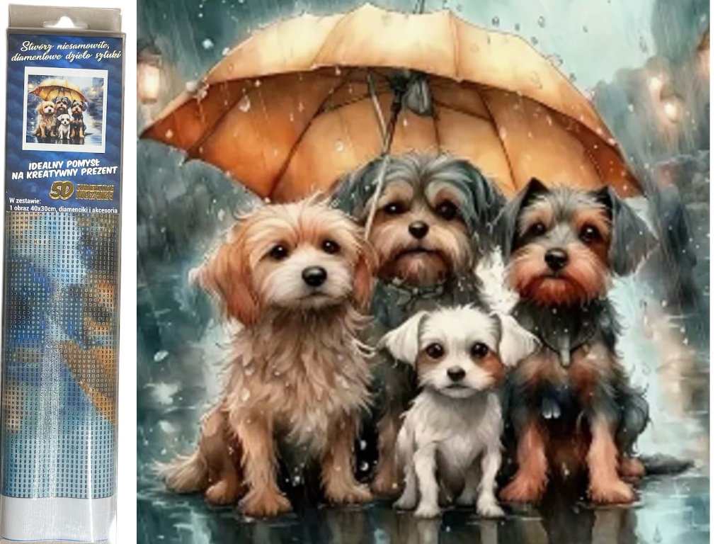 Diamantové malování - Pejsci pod deštníkem 30 x 40 cm