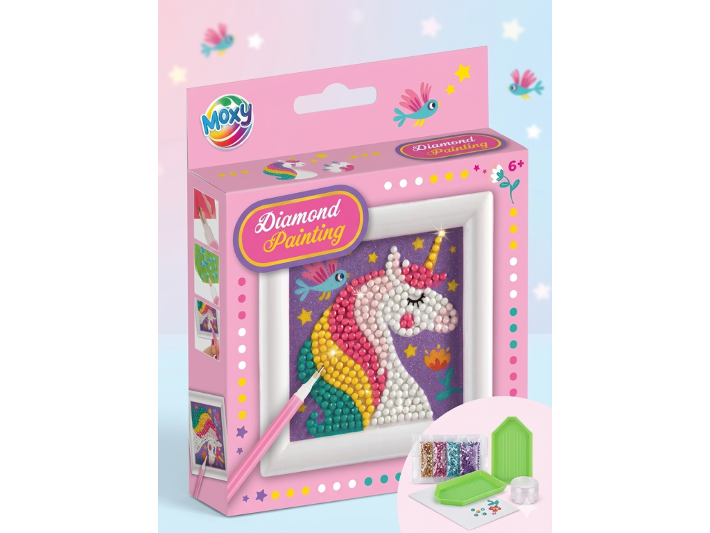 Díky kompletní výbavě si můžete sami vytvořit originální třpytivý obraz, který rozzáří každý interiér. V balení najdete vše potřebné – předtištěný obraz o rozměrech 9,5 × 9,5 cm, barevné akrylové kamínky, speciální pero na nanášení diamantů a voskový polštářek a rámeček, do kterého vložíte hotový obrázek.