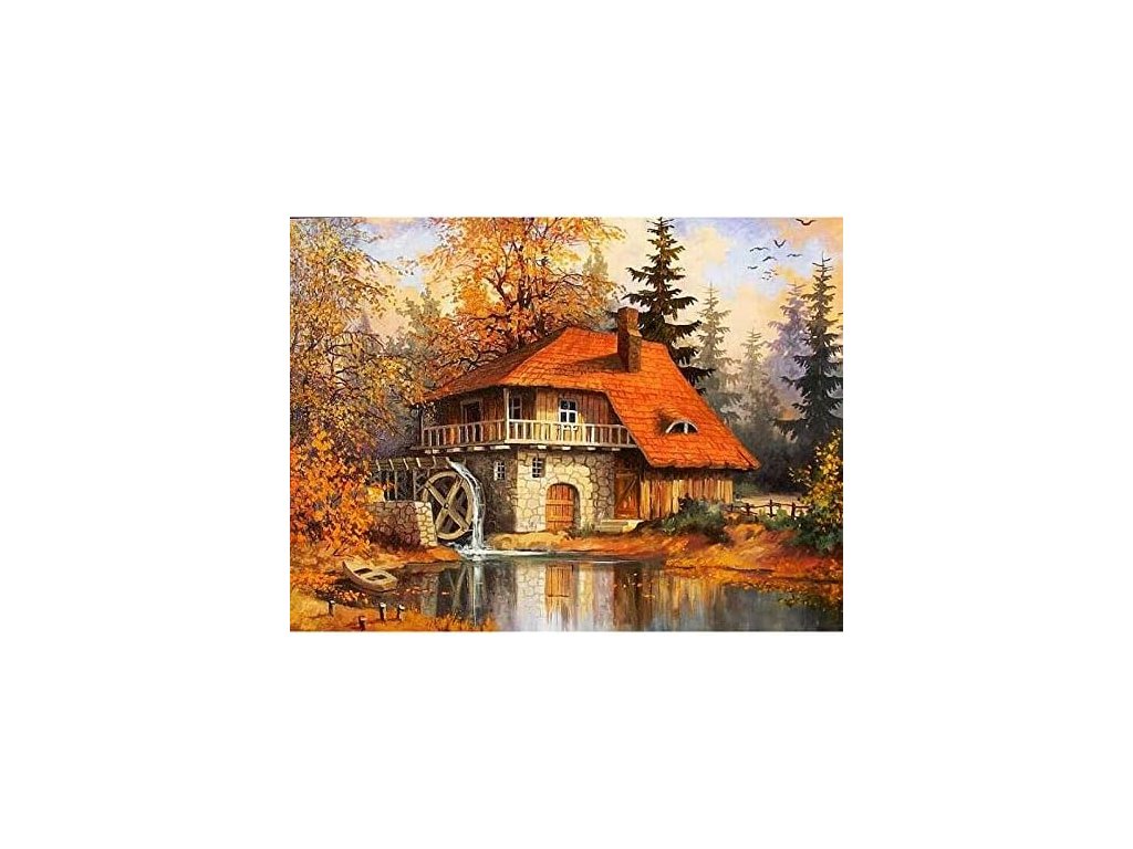 Diamantový obrázek Dům s mlýnem 30x40cm