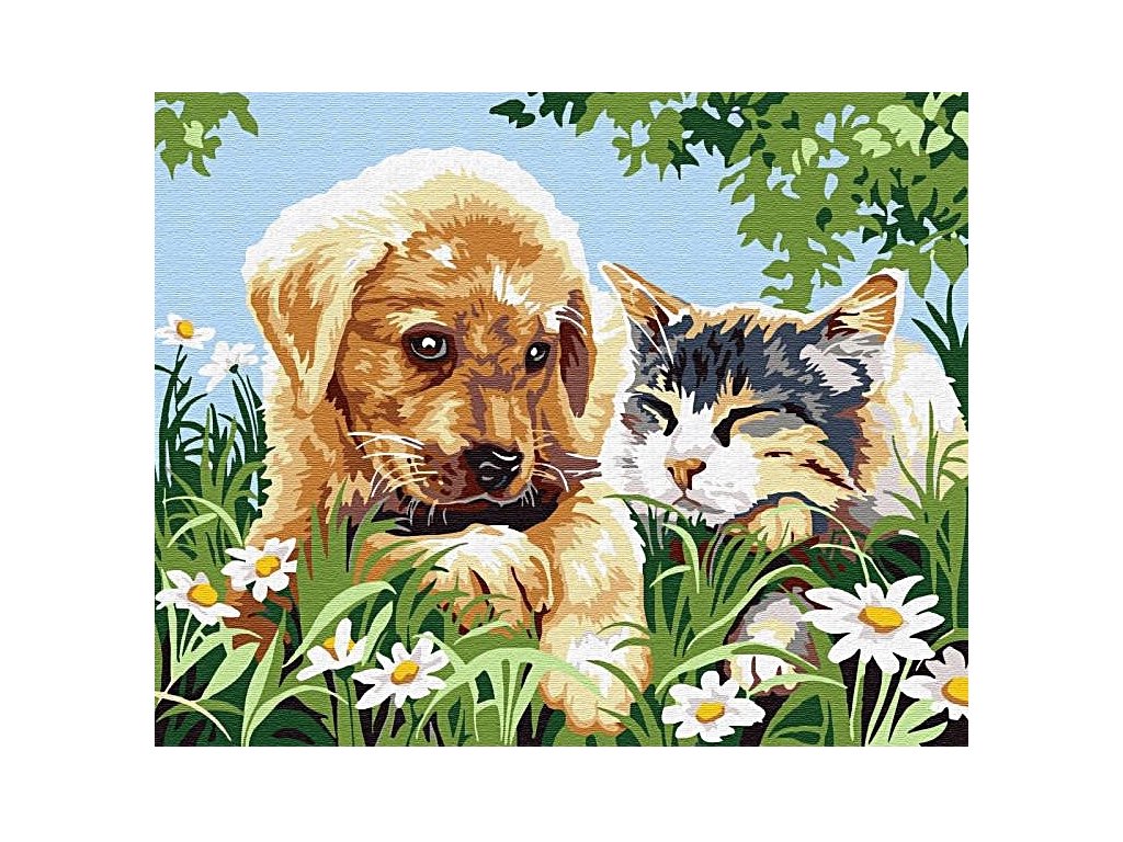 Diamantový obrázek -Kotě a štěně na louce 30x40cm