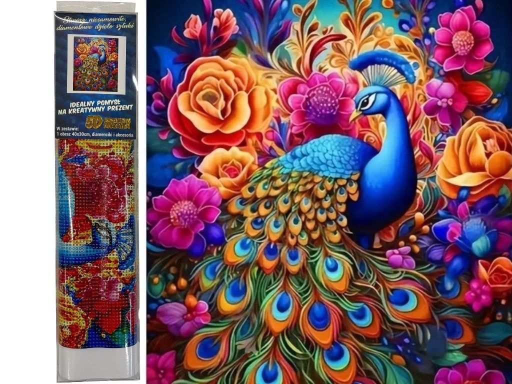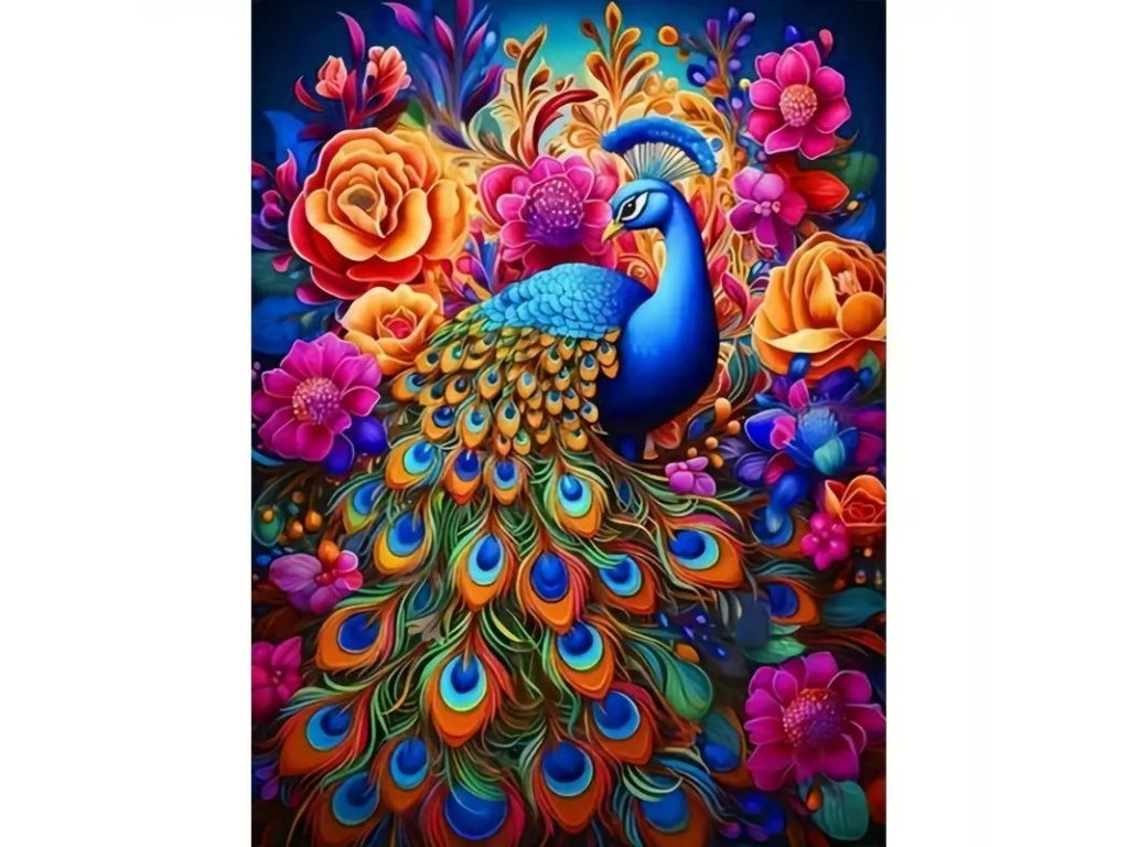 Diamantový obrázek - páv a květiny (vznešenost) 30x40cm