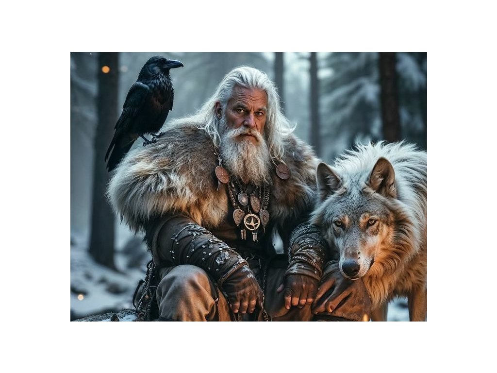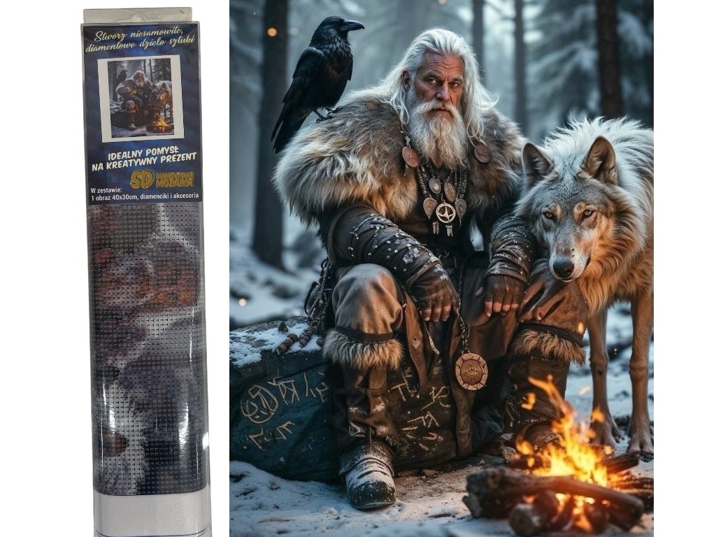 Diamantový obrázek Severský válečník s vlkem 30 x 40 cm