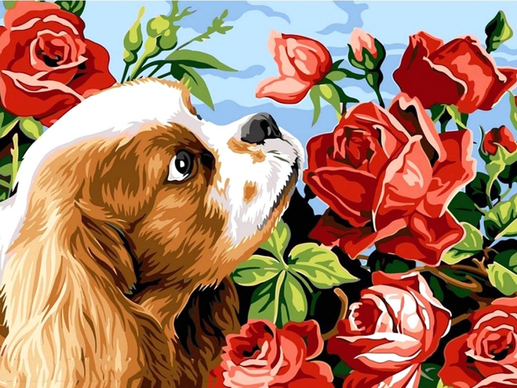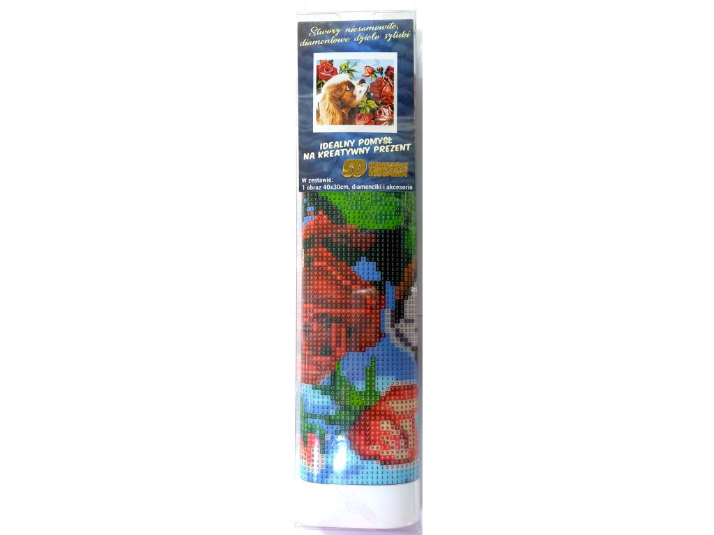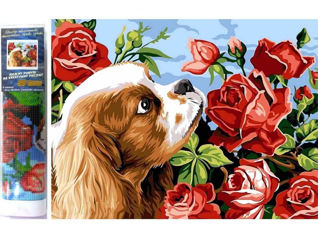 Diamantový obrázek - Štěne s růží 30x40cm