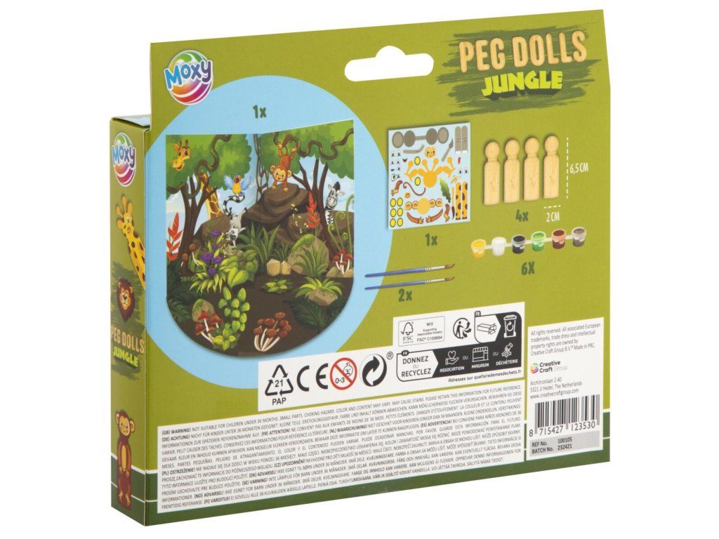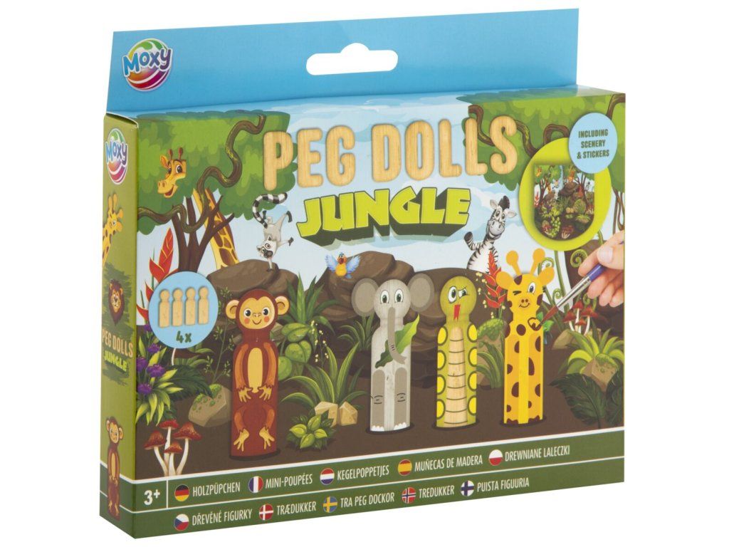 Výtvarná sada na výrobu 4 dřevěných panáčků v Safari motivu. Obsahuje: panáčky, barvy, pastelky, pozadí na hraní a samolepky.