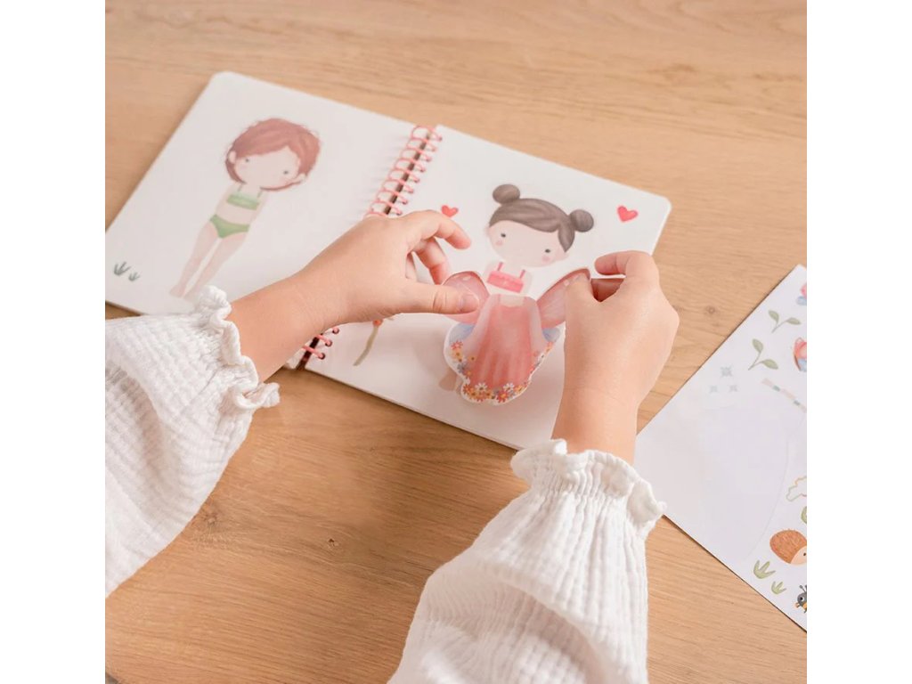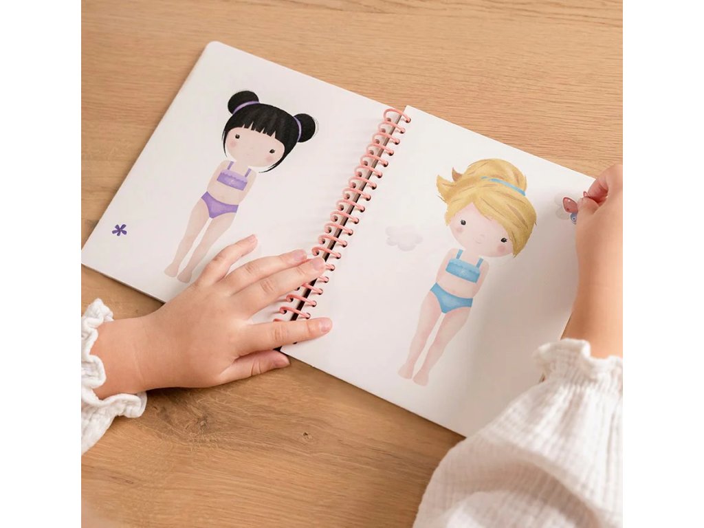 24 stran s postavou dívky, jejích přítelkyň a nejrůznějších holčičích doplňků, 12 archů s více než 150 znovupoužitelnými samolepkami, kvalitní provedení z pevného materiálu, které odolá i nadšenému dětskému zacházení.