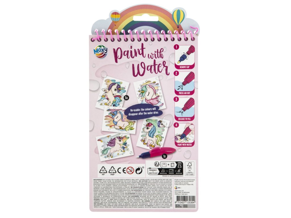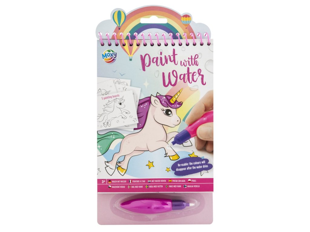 Malování vodou, magické malování, vodní omalovánky nebo také kouzelné malování je zábavná a kreativní aktivita, která je ideální pro malé děti. Místo klasických barev a štětců používáte štětec, který naplníte vodou. Štětcem malujete po obrázku se speciálním bílým povrchem. Povrch se po kontaktu s čistou vodou zbarví a objeví se krásný barevný obrázek. Až obrázek zaschne, můžete malovat znovu a stále dokola.