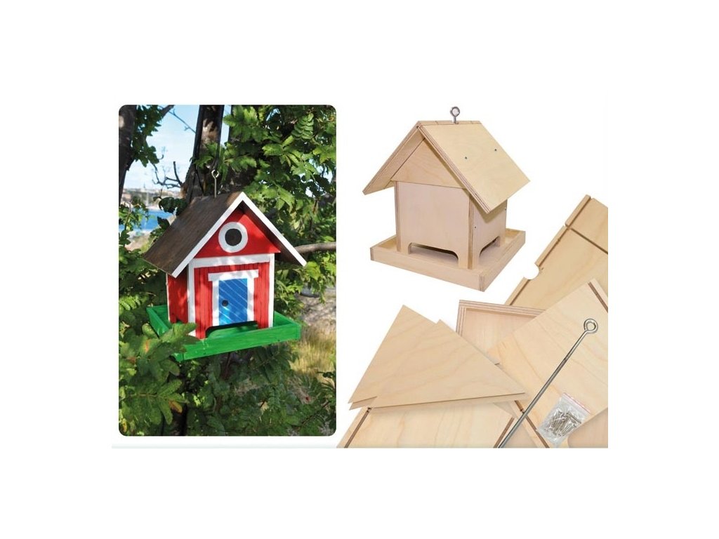 Stavebnice, která obsahuje všechny díly potřebné k sestavení krmítka pro ptáčky. Pomáhat ptákům je skvělý pocit a je zábavné dát krmítku jedinečný vzhled. Nebojte se pozvat celou rodinu nebo přátele a vyrábět společně. POZOR! Tento výrobek obsahuje ostré části. Musí být sestaven s dospělou osobou.