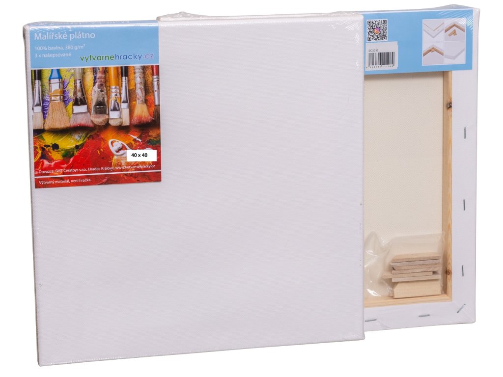 Vysoce kvalitní malířské plátno o rozměru 40 x 40 cm s gramáží 380 g/m2, 100% bavlna - 3x našepsováno. Plátno je natažené na rám z borovicového dřeva.