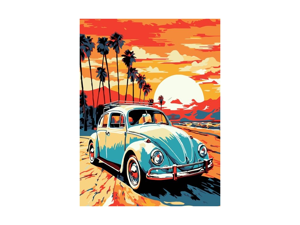 Veterán při západu slunce (30 x 40 cm) - malování na černé plátno podle čísel