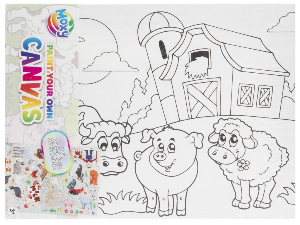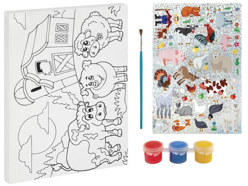 Malování na plátno, barvy, samolepky a štětec - Farma 20 x 15 cm