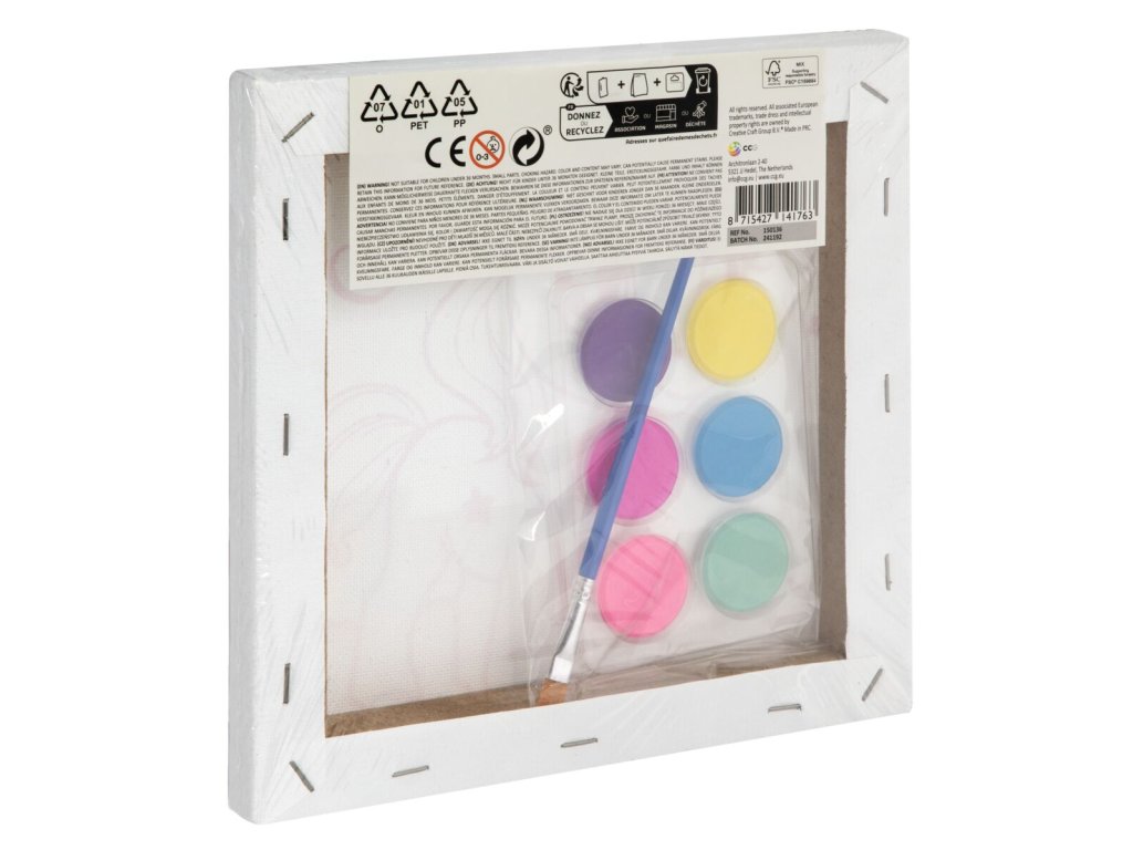 Balení obsahuje: Plátno 19,5 x 19,5 cm, 6 barev, štětec