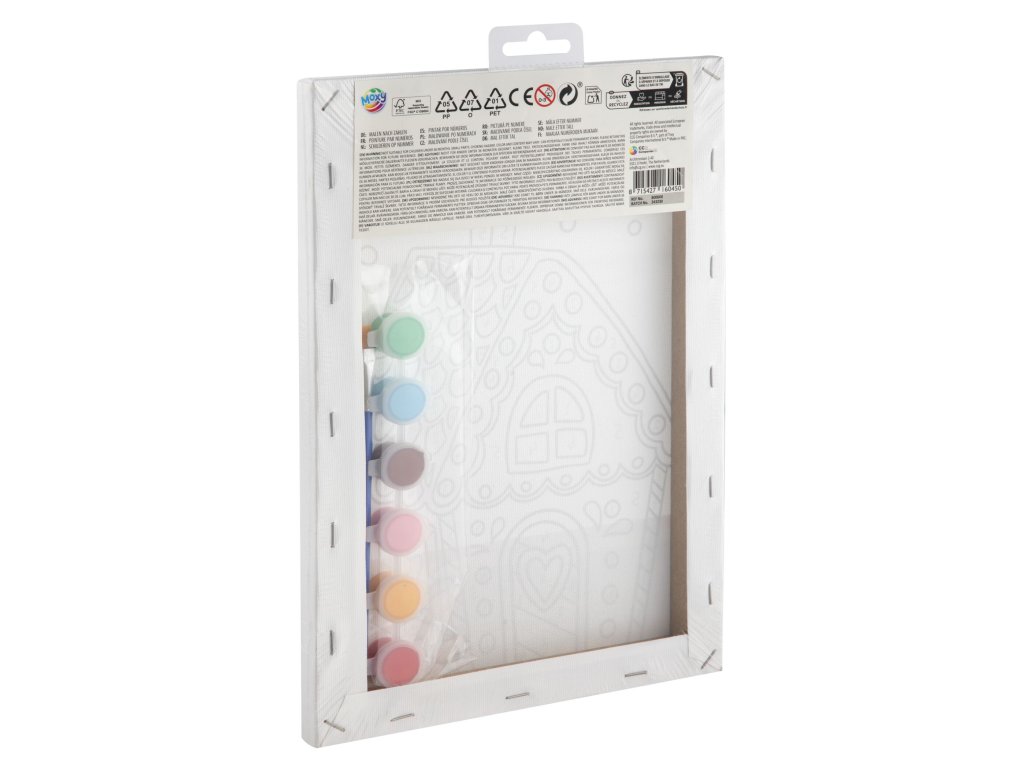 Balení obsahuje: Plátno 29,7 x 19,5 cm, 6 barev, štětec