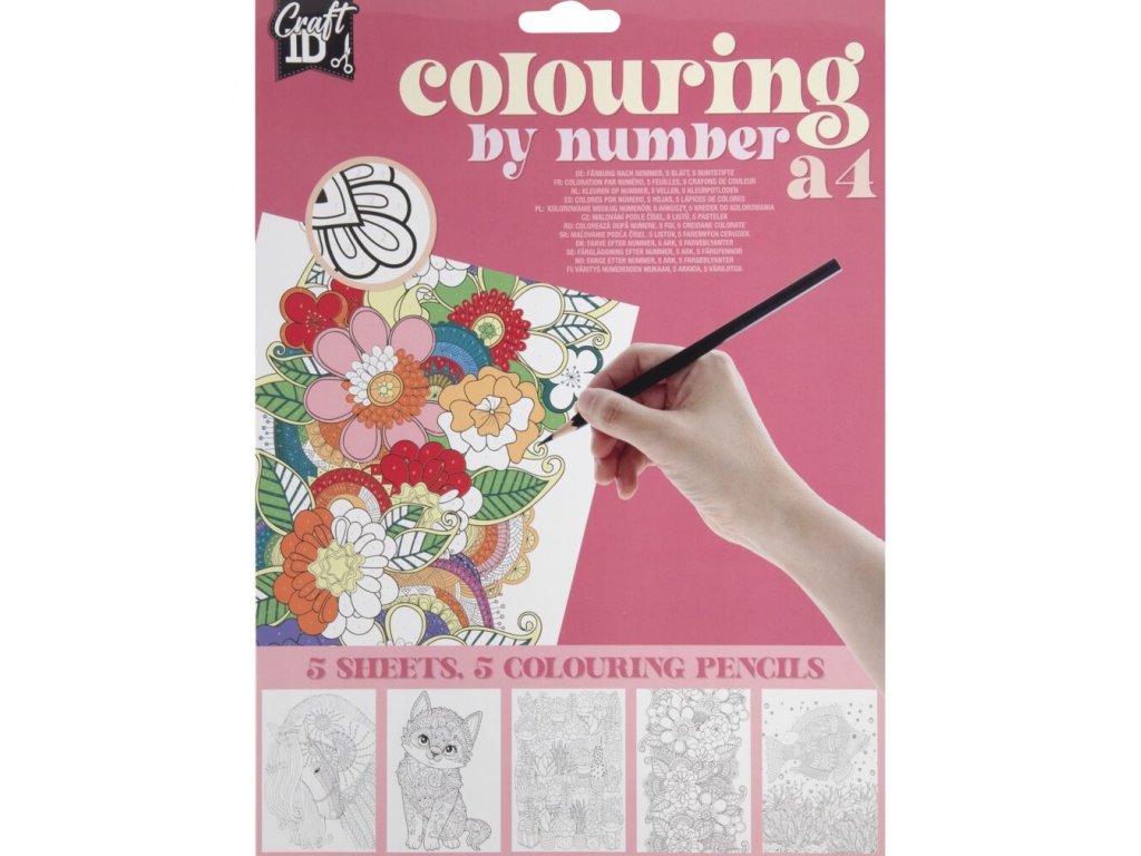Malování podle čísel , A4, 5 listů+ 5 oboustranných pastelek