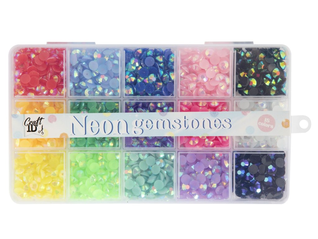 Neonové drahokamy, 15 barev, průměr 0,5 cm