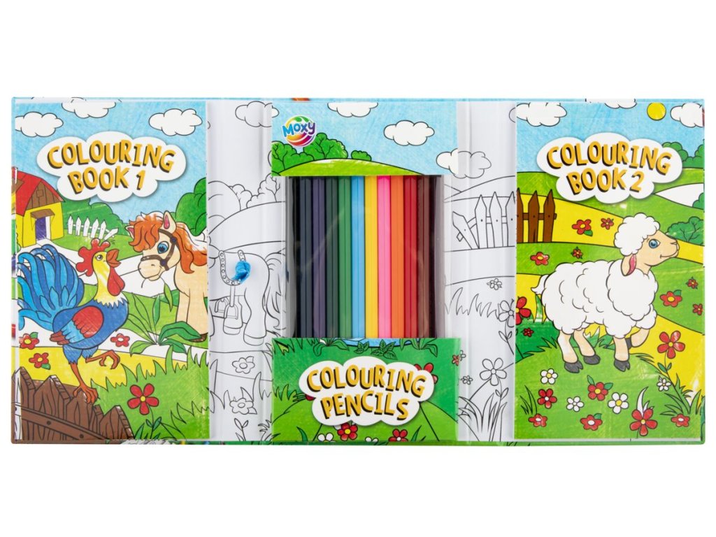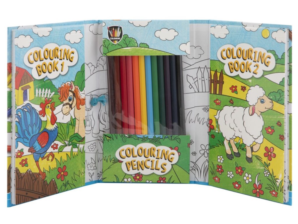 Set omalovánek obsahuje 2 knihy omalovánek (60 listů), 12 pastelek