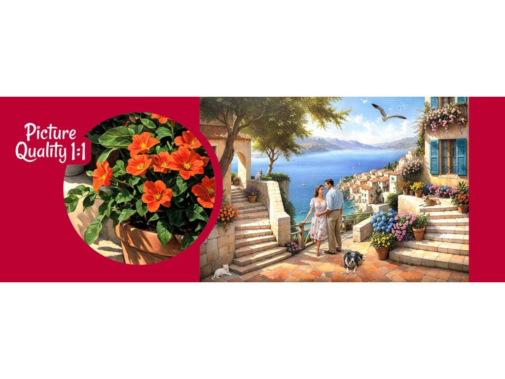 Puzzle jsou vysoce kvalitní, vyrobené z nejlepšího materiálu pro puzzle. Složené puzzle jsou o velikosti 50 x 70 cm a další výhodou produktu je tloušťka puzzle 2,2 mm. Puzzle i krabička mají krásný saténový povrch. Všechna tato kritéria zajišťují vysoký komfort skládání puzzle. Dílky mají velmi rozmanité tvary. Každý kus se vejde jen tam, kam má a nezapadne jinam. Velikost krabičky je 35 x 25x 5cm. Vyrobeno v EU.