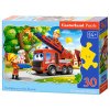 Malovaní hasiči při záchraně koťátka, puzzle Castorland 30 dílků.