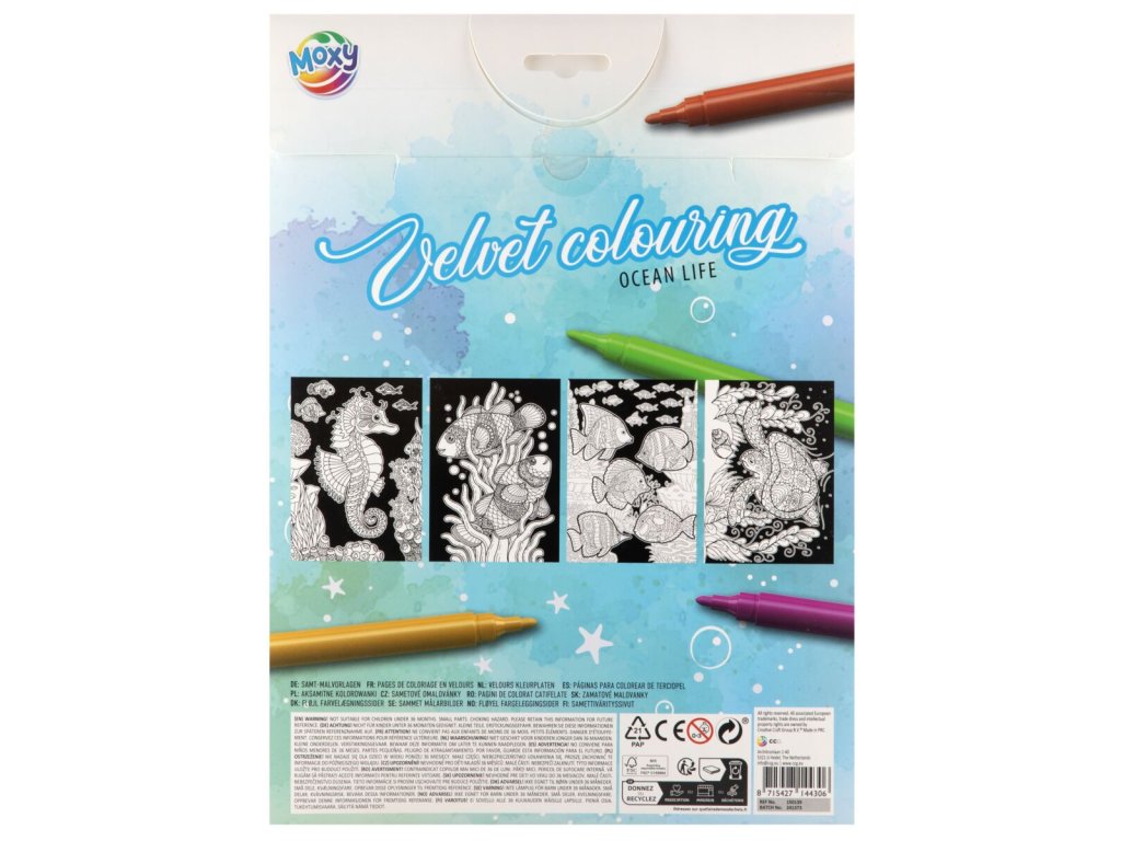 Osahuje 4 sametové předlohy A4 k vymalování fixy. Fixy nejsou součástí balení.
