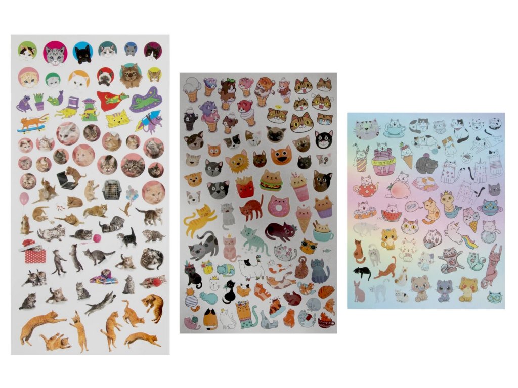 Tři archy samolepek plné nejrůznějších koček, kočiček, koťátek. Roztomilost sama.
