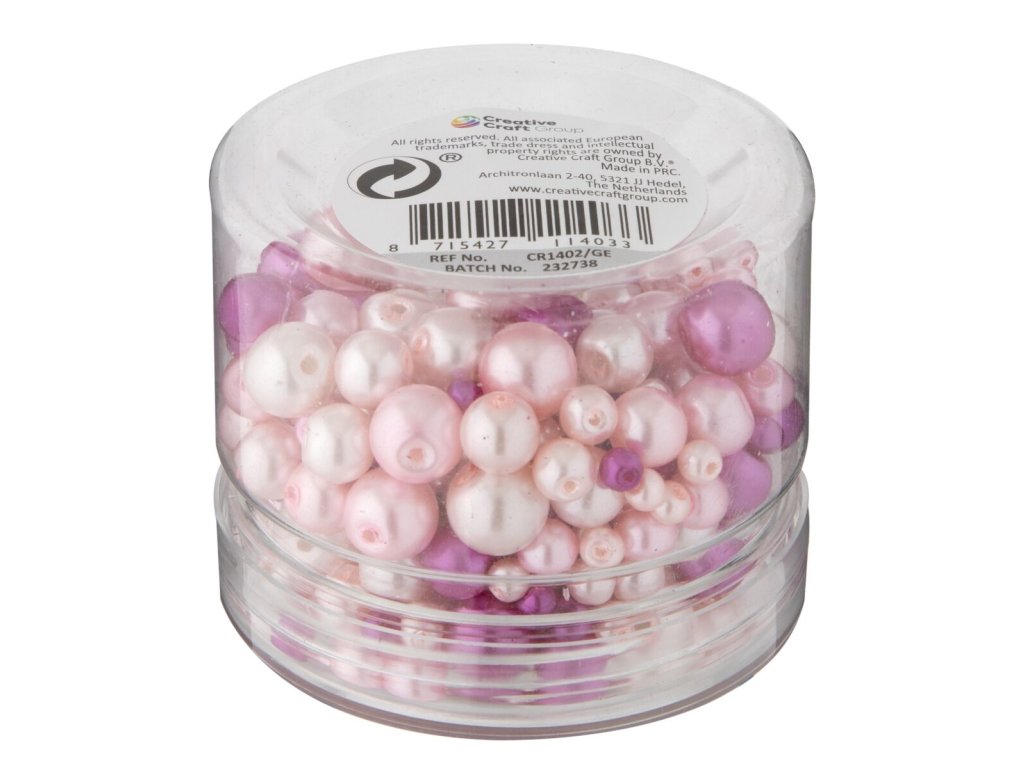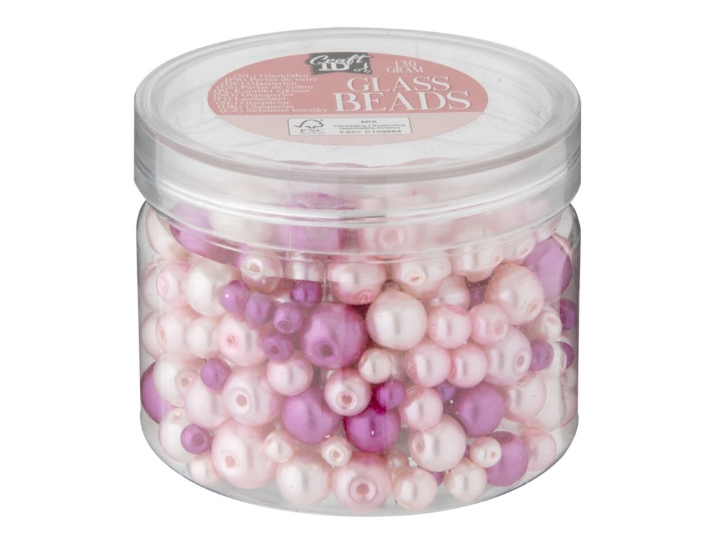 Balení obsahuje 130 g skleněných korálků různých velikostí, cca 1 - 0,5 cm v růžových odstínech.