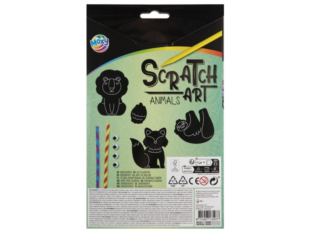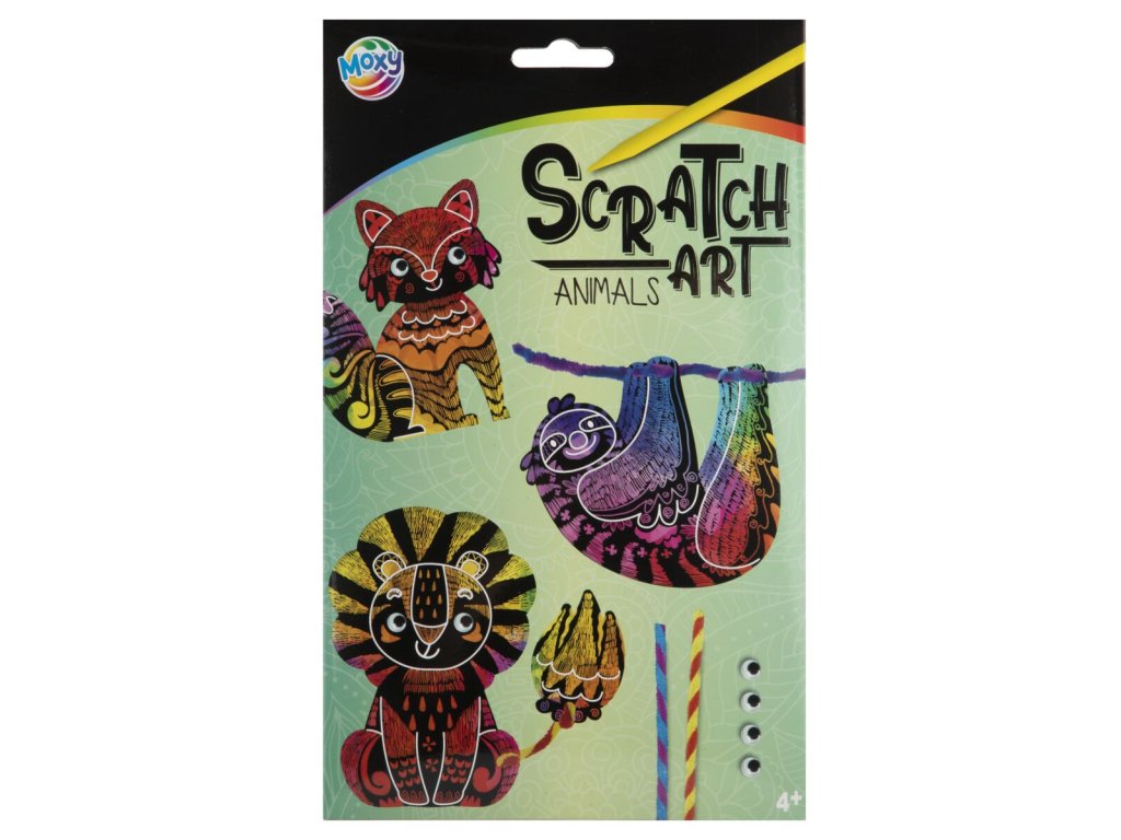 Obsahuje : obrázek lva, lenochoda a lišky, který si složíš pomocí modelovacích drátků, lepicí očička, obrázkový návod, škrabadlo