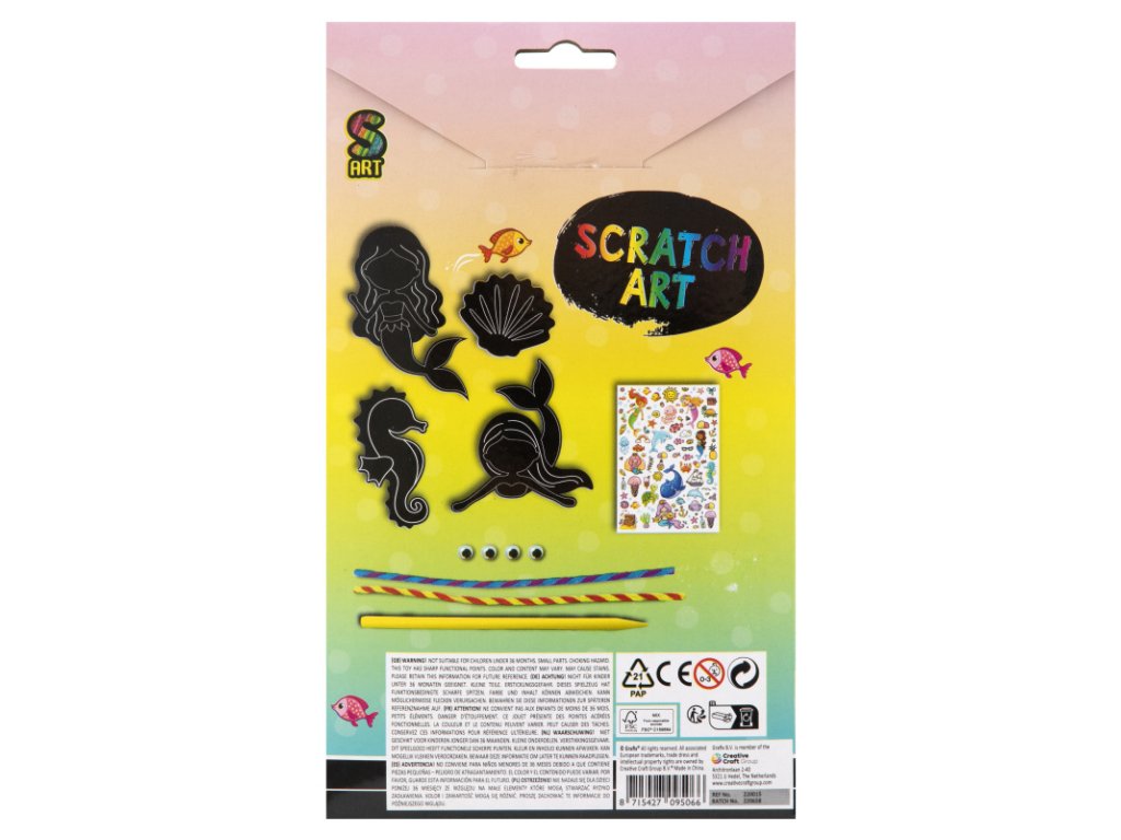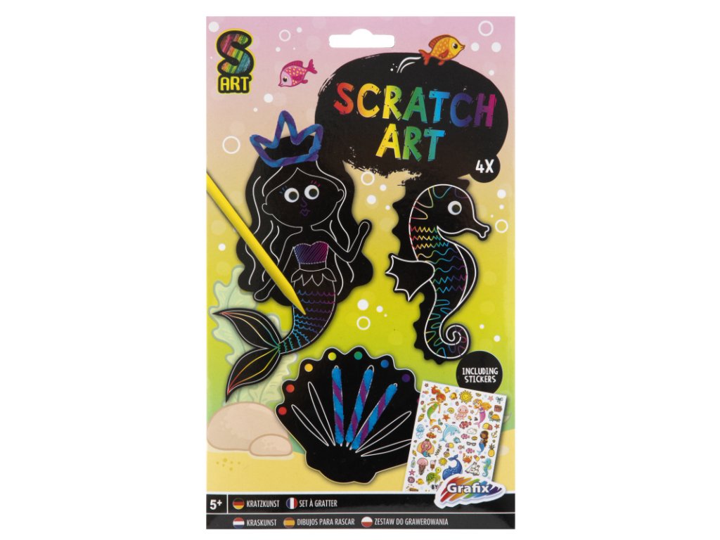 Škrabací obrázky se samolepkami, 4ks - mořská pana