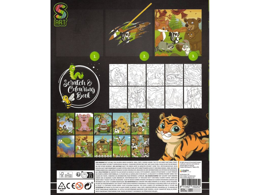Sada obsahuje 10 škrabacích obrázků a 10 omalovánek s motivem zvířat, škrabátko.