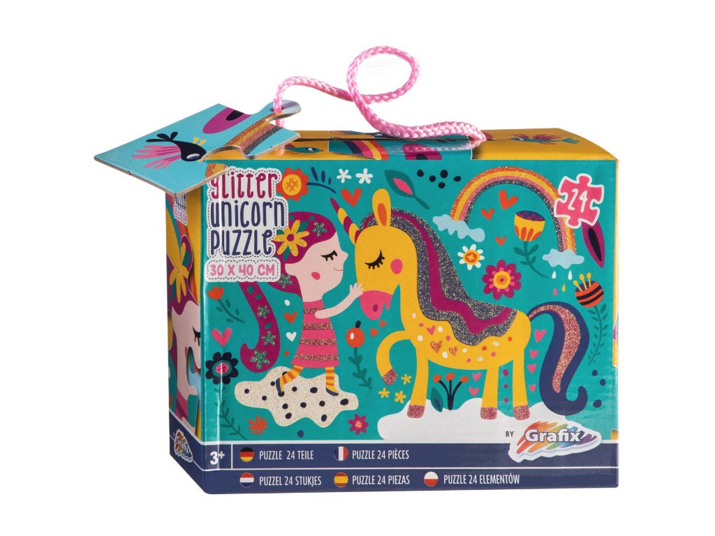 Třpytivé puzzle 24 dílků - jednorožec