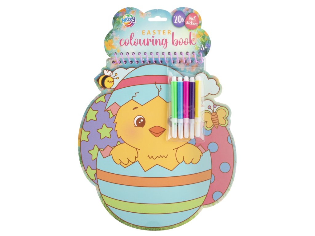 Velikonoční omalovánky 20 listů, arch samolepek a 5 barevných fixů vše v tvrdých deskách. Velikost 25 x 22 cm. Vhodné od 3 let.
