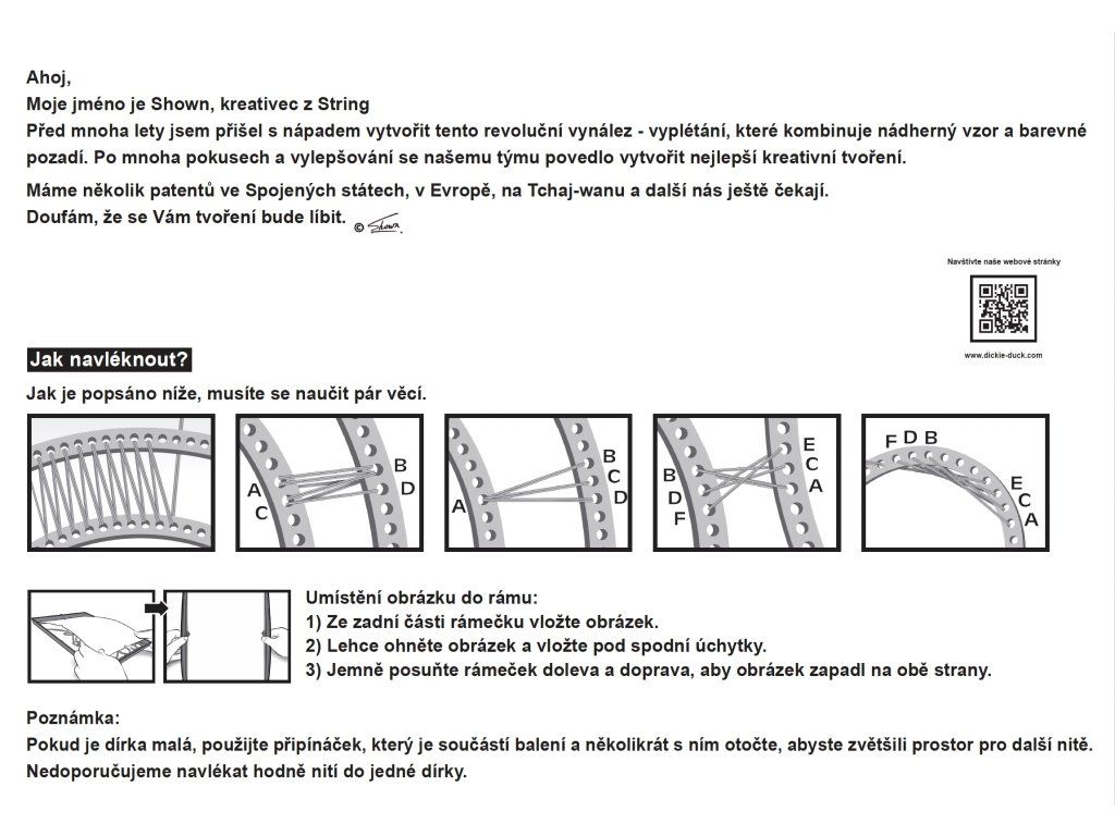 Vyplétaný obrázek – sada obsahuje plastový rám s předlohou, na kterém vyplétáte obrázek, barevné pozadí rámu, bavlnky a plastové jehly. Obrázek vyplétáte přímo na rámu. Barevné bavlnky pomocí jehly protahujete dírkami na rámu a tím vám vznikne originální dekorace. Obrázek z bavlnek je skvělým dárkem pro přátele, rodinu nebo pro sebe. Je to jedinečný a osobní dárek, který si každý zamiluje. Ručně vyrobený obrázek z bavlnek dodá vašemu domovu útulnou a hřejivou atmosféru. Bavlnky jsou měkké a příjemné na dotek a přicházejí v široké škále barev a vzorů, takže si můžete vybrat ten, který nejlépe ladí s vaším interiérem. Obrázek může být krásným doplňkem obývacího pokoje, ložnice, dětského pokoje nebo jakékoli jiné místnosti ve vašem domě.
