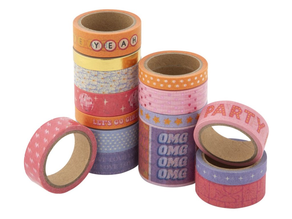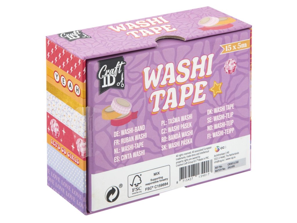 Washi pásky v boxu, 15 ks, 5 m - fialové