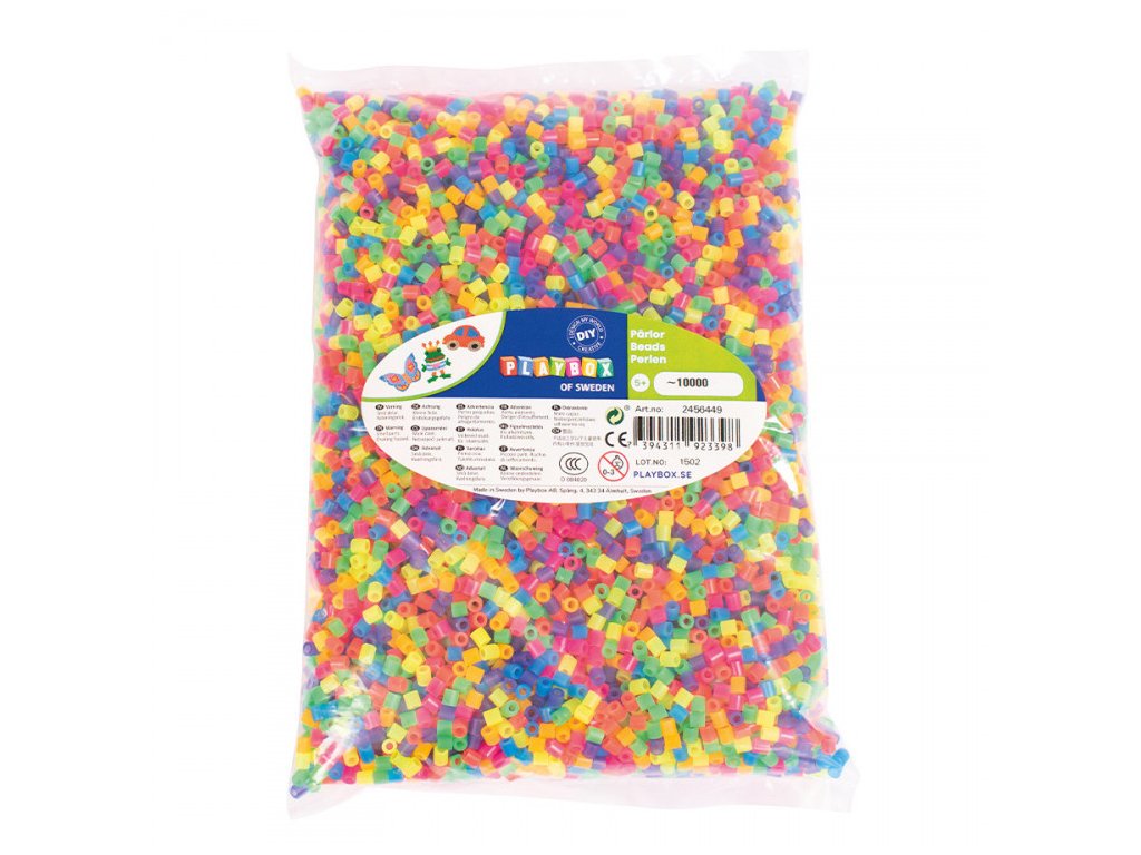 Zažehlovací korálky, 10000 ks. K sestavení obrázků z korálků používejte podložky pro korálky, na které buď podle šablon nebo podle vlastní fantazie vytváříte nejrůznější motivy. Poté na vyskládaný obrázek položte běžný pečící papír a zažehlete žehličkou ohřátou na nejvyšší stupeň. Nechte korálky vychladnout, obrázek sejměte z podložky a máte hotovo! Vhodné pro děti na podporu jemné motoriky. Korálky nemusíte jen zažehlovat, můžete je používat jako normální korálky a navlékat je na provázek.